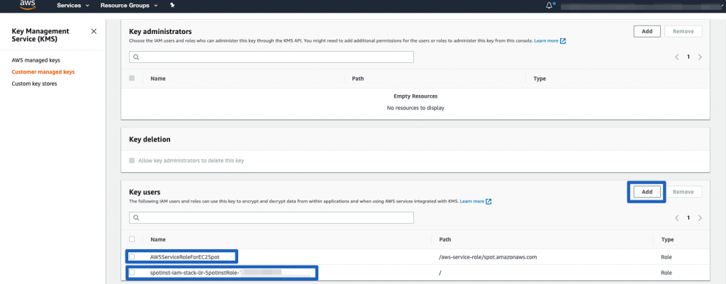 AWS Key Management Service (KMS) is a service that makes it easy for you to create and control the encryption keys used to encrypt your data. You can easily use encrypted volumes with spot instances provisioned by Spot. In order for Spot to be able to utilize your encrypted volumes, you need to grant permissions to access the custom KMS used to encrypt the volumes.