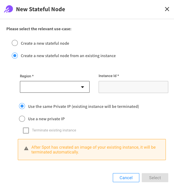 3. Mark the use-case Create a New Stateful Node and click Select.