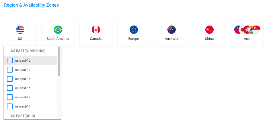 2. Select the region and availability zones.