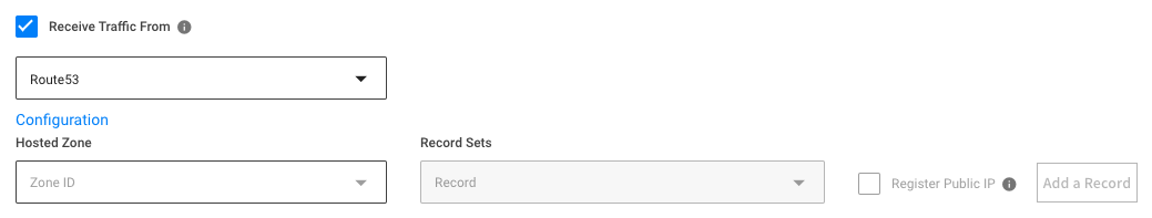 • For Route 53 select your Hosted Zone, Record Sets and Public IP registration, then click Add a Record.