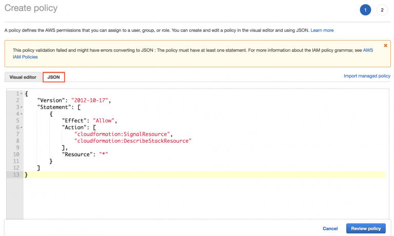 Click review, give the policy a name and create the policy: